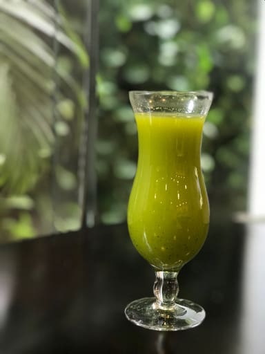Suco de Laranja natural batido com couve e hortelã.* 100% natural* sem açúcar
