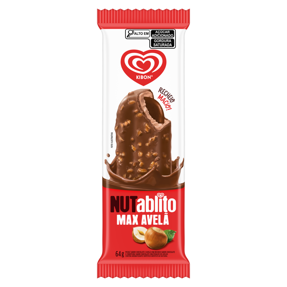 O seu clássico Tablito, na versão Max Avelã!!! O Nutablito é a evolução do Tablito, é um picolé de sabor chocolate com avelã com cobertura sabor chocolate, inclusões de avelã e recheio macio sabor chocolate que “marca o dente”. Experiência surpreendente do início ao fim.